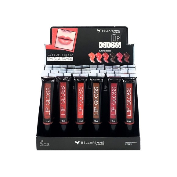 2. LIP GLOSS COM APLICADOR BELLA FEMME - BOX COM 24 UNIDADES